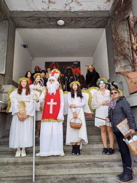 I letos naši školu navštívil Mikuláš se svou družinou. Vše se odehrávalo pod taktovkou zkušené p. učitelky J. Sevránkové, která tuto tradici podporuje už mnoho let. S žáky IX. třídy, kteří si přinesli opravdu krásné kostýmy, navštívili malou i velkou školu, společně pochválili hodné žáčky, pohrozili těm trochu neposlušným a pak se zase odebrali zpět do výuky. Akce se povedla a všichni si ji moc užili. Děkujeme všem aktérům za podporu.