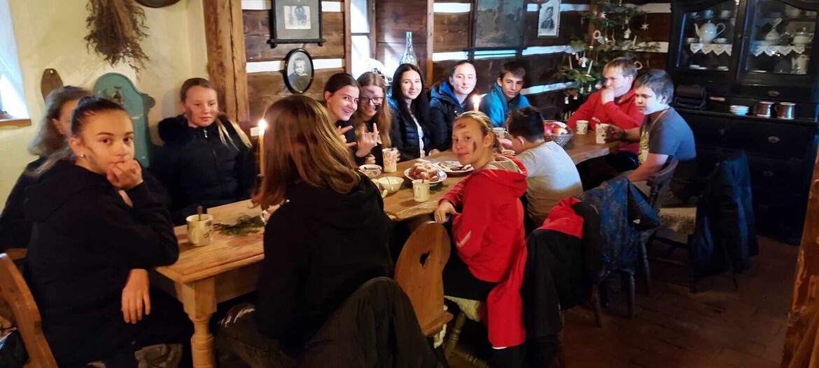Vrátili jsme se zde v čase, někam na konec 19. století. Byla to nádherná zastávka a také trochu námět k zamyšlení. Jak se vlastně žilo v této době, jaká byla technika, nářadí, jaké bylo bydlení, jak se dodržovaly vánoční tradice... Prohlédli jsme si všechny prostory, pan Kudrna nám moc hezky o všem vyprávěl. Uvnitř obytné chaloupky, kde bylo příjemné teplíčko a moc krásné prostředí, se o nás postarala paní Kudrnová, popíjeli jsme čajík, ochutnali cukroví a užívali si klidnou pohodu, hádali jsme, k čemu sloužily různé předměty... Bylo to super. Ani se nám nechtělo zpátky do reality. Děkujeme moc manželům Kudrnovým, kteří se o nás postarali a kteří si své muzeum s láskou opečovávají. Děkujeme SŠA Holice za miniautobus, kterým nás bezpečně svezl pan řidič P. Dědič.