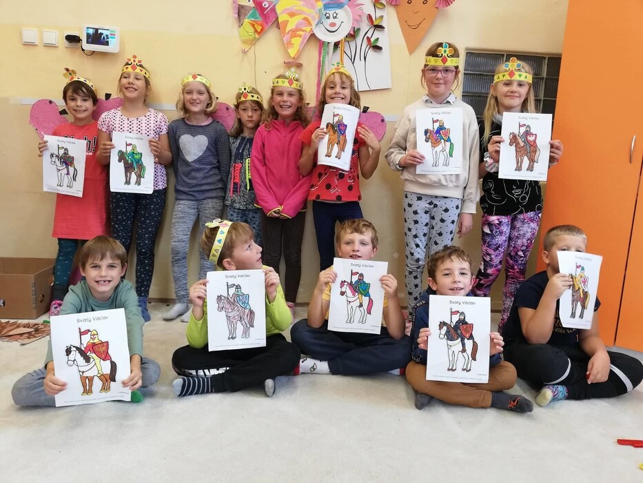 My jsme si ve družině vyrobili svatováclavskou korunu, která je jako česká královská koruna nejstarší a nejvýznamnější součást českých korunovačních klenotů. Součástí našeho vyprávění byla také omalovánka se svatým Václavem na koni.