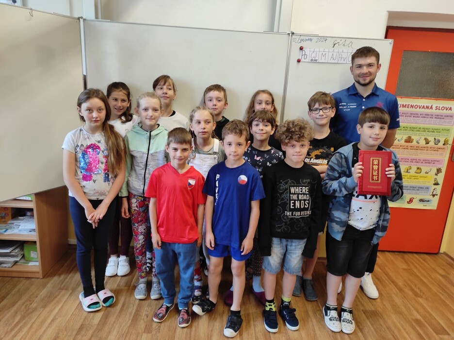 V úterý dne 4. 6. se domů do České republiky z Číny vrátil cyklista, závodník Dominik Horák. S velkou radostí jsme ho v pátek přivítali v naší třídě na příjemné besedě doprovázené fotografiemi a trofejemi ze závodů. Dozvěděli jsme se zajímavé informace o životě Číňanů i o závodech. Děkujeme za návštěvu a příjemnou hodinku.