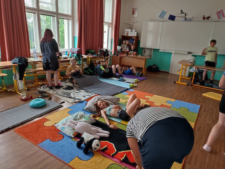 Školní přespávačka se nám moc líbila. Náš odpolední program byl velmi nabitý. Opékali jsme buřty, zorganizovali jsme šipkovanou, hráli jsme míčové hry, tančili jsme a absolvovali jsme stezku odvahy, která byla taktéž úžasná. Udělali jsme si skvělé občerstvení jako například tousty, meloun a mnoho dalších výborných jídel.