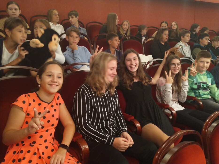 Dnes vyrazili šesťáci s osmáky za kulturou. Ve Východočeském divadle v Pardubicích hráli pohádku S čerty nejsou žerty. A že název nelže, o tom se přesvědčili sami žáci, když se čerti najednou objevili vedle nich, a to i na balkonech, a pořádně je vyděsili. Když se ale zlobivci vrátili do pekla, děti si již mohly v klidu užít bezvadné zpracování pohádky. Šesťáci si s sebou přivezli i třídního maskota, opičku Emičku, aby si také vychutnala báječné výkony pardubických herců. A bylo se věru na co dívat! Děkujeme. Mgr. I. Šmaterová