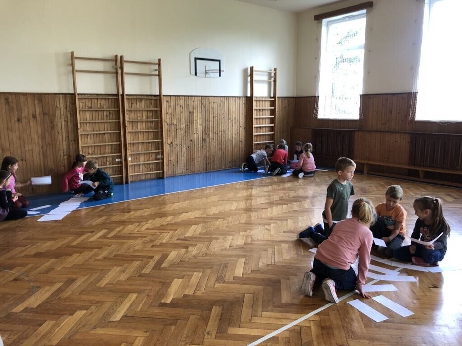 Čeština trochu jinak. Žáci II. třídy měli za úkol sestavit nekonečný řetěz slov podle určitého pravidla, který museli objevit. Poslední slabika slova byla zároveň první slabikou slova následujícího - slabikový fotbal. Skupinám se práce podařila. Karty se slovy poslouží i k jiným činnostem.