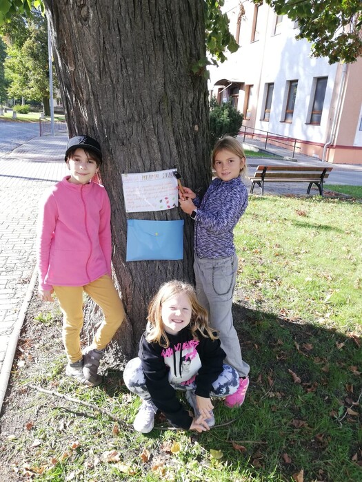 kterou si můžete kdykoliv se svými dětmi projít. Start i cíl je u malé školy u lípy. Stezka vede přes alejku a poté kolem školy. Věříme, že si stezku užijete.