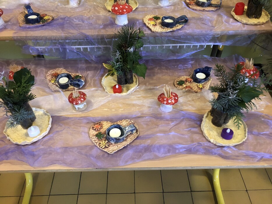 Ve vestibulu velké školy probíhá vánoční výstava keramického kroužku. Jsou to výrobky hlavně našich prvňáků a druháků a myslím, že se jim opravdu povedly.