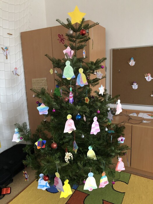 Druháčci si krásně ozdobili vánoční stromeček.