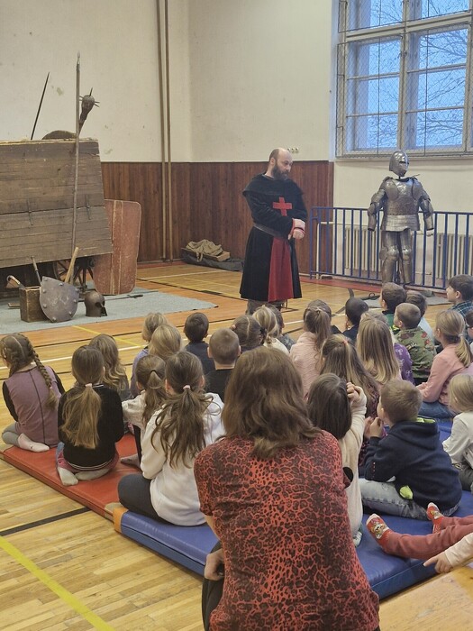 V pátek 17. 1. jsme měli jedinečnou příležitost přivítat v sokolovně skupinu Pernštejni, která nám představila fascinující program "Jak válčili husité". Tento vzdělávací a zábavný projekt přiblížil žákům dobu husitských válek, taktiku boje, zbraně, zbroj, a dokonce i ikonický husitský vůz.