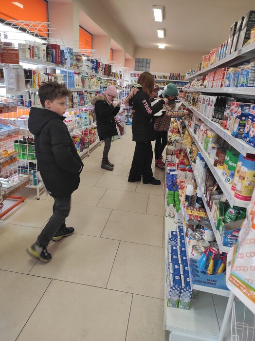 Dnes jsme si propojili hodiny matematiky a přírodovědy do jednoho bloku. Čekaly nás jednotky objemu, hmotnosti a délky. Nejdříve jsme si vše připomněli ve třídě a pak jsme se vydali do COOPu v Horní Rovni. Tam nás již znají a vždy ochotně nechají zpracovat naše pracovní listy. Dnes bylo naším úkolem najít co nejvíce zboží o hmotnosti 150g, 500 g, 1 kg a o objemu 250 ml, 1 l a 2 l. Všichni pilně vyhledávali a někteří měli připravenou tabulku téměř zaplněnou.