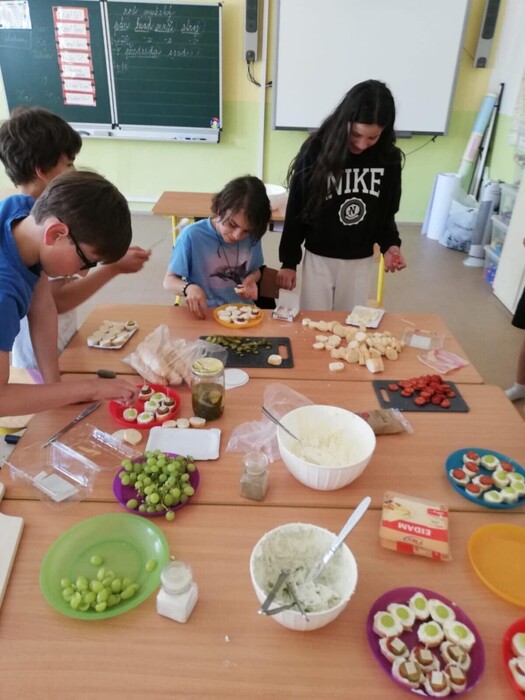 Den otců letos připadá na neděli 15. června. I naše 4. oddělení družiny se připravilo na tento svátek. Tatínkové mají rádi dobré jídlo, proto se naše oddělení proměnilo ve výrobnu jednohubek. Umíchali jsme si pomazánky a zdobili hroznovým vínem, klobásou, okurkou a sýrem. Každý si domů odnesl tácek jednohubek a měl za úkol, dát taťkovi velkou pusu a popřát dobrou chuť. Věříme, že jsme tatínkům udělali radost.