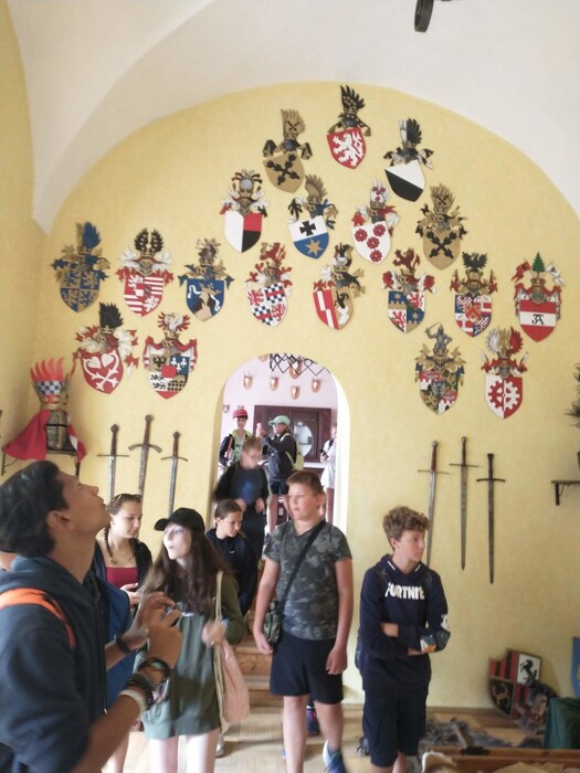 Volba výletu byla tedy jasná. Pojedeme na Housku. A tak jsem se my, lovci záhad, vydali na hrad, kdežto se zmiňoval už Karel Hynek Mácha, v úterý 28. 6. Počasí nám přálo, ač v noci značně divoké, se ráno umoudřilo, dokonce i sluníčko se na nás usmálo a měli jsme štěstí i na průvodce, jelikož se nás ujal sám kastelán, pan Konopásek. Zajímavě vyprávěl o záhadách a historii hradu. Ale to jsme pocítili na vlastní kůži po příchodu do hradního areálu, kdy nám začala stávkovat elektronika. Ti citlivější z nás se cítili v hradní kapli velice špatně. Samozřejmě, vždyť pod námi byla zasypaná díra, vedoucí možná prý i do pekla. Tam jsme se v rámci prohlídky mohli i podívat. Měli jsme štěstí, všichni jsme se z něj vyškrábali nahoru. Míša, který na hradě slavil narozeniny, měl na konci prohlídky zamknout hradní bránu.