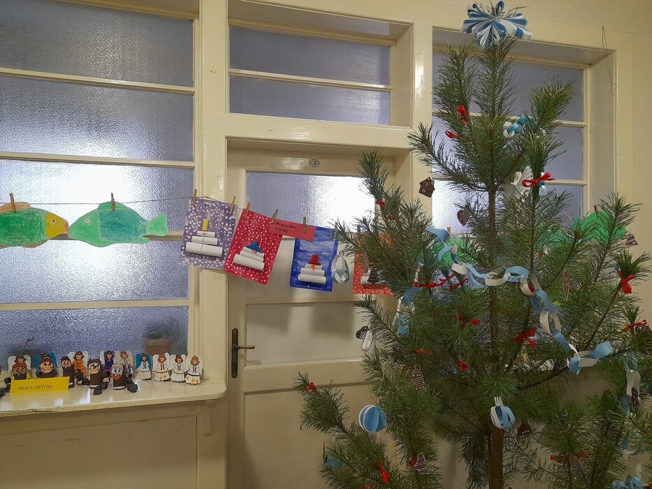 Při hodinách výtvarné a pracovní výchovy žáci malovali obrázky s vánoční tematikou a novoroční PF, vyráběli vánoční ozdoby a dekorace, "oprášili" jsme několik let starý betlém a vyrobili dva menší nové. Páťáci se pochlubili krásnými postavičkami čertíků a dvě šikovná děvčata z devítky kartonovými soby a tučňáky. Připomněli jsme si také vánoční "bytosti", které v různých částech světa přinášejí hodným dětem dárky.