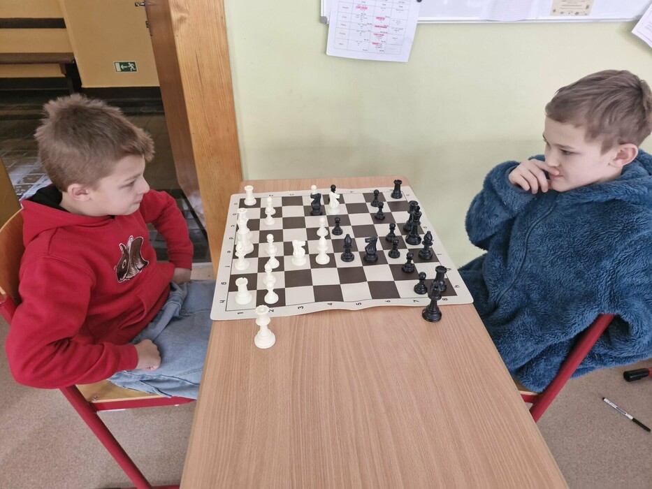Děti se již naučily zvládat pohyb jednotlivých figur a základní pravidla. Postupně se seznamují s jednodušší šachovou taktikou a strategií. Pokud jim to i nadále půjde dobře, mohly by si na konci školního roku zahrát svůj první školní šachový turnaj. 😃👍