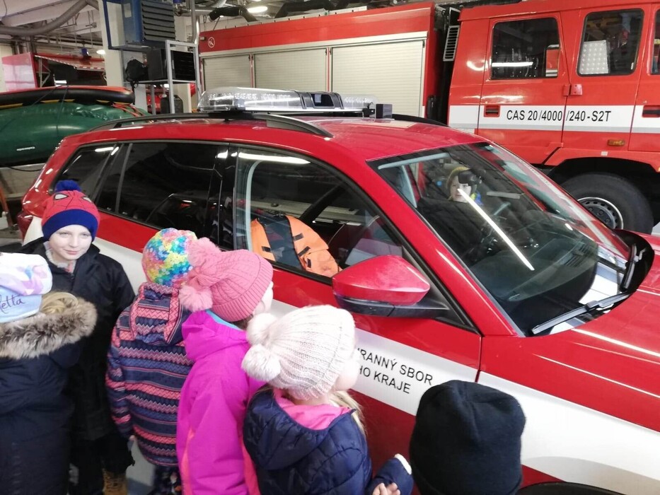 26.1. jsme byli na exkurzi u pardubických hasičů. Moc se nám tam líbilo. Hasiči nám povídali o své práci, technice, předvedli nám termokameru, slaňování s člověkem a dokonce i jízdu po tyči z horního patra do garáží. Děti si s velkým zájmeme prohlédly auta a jejich vybavení.