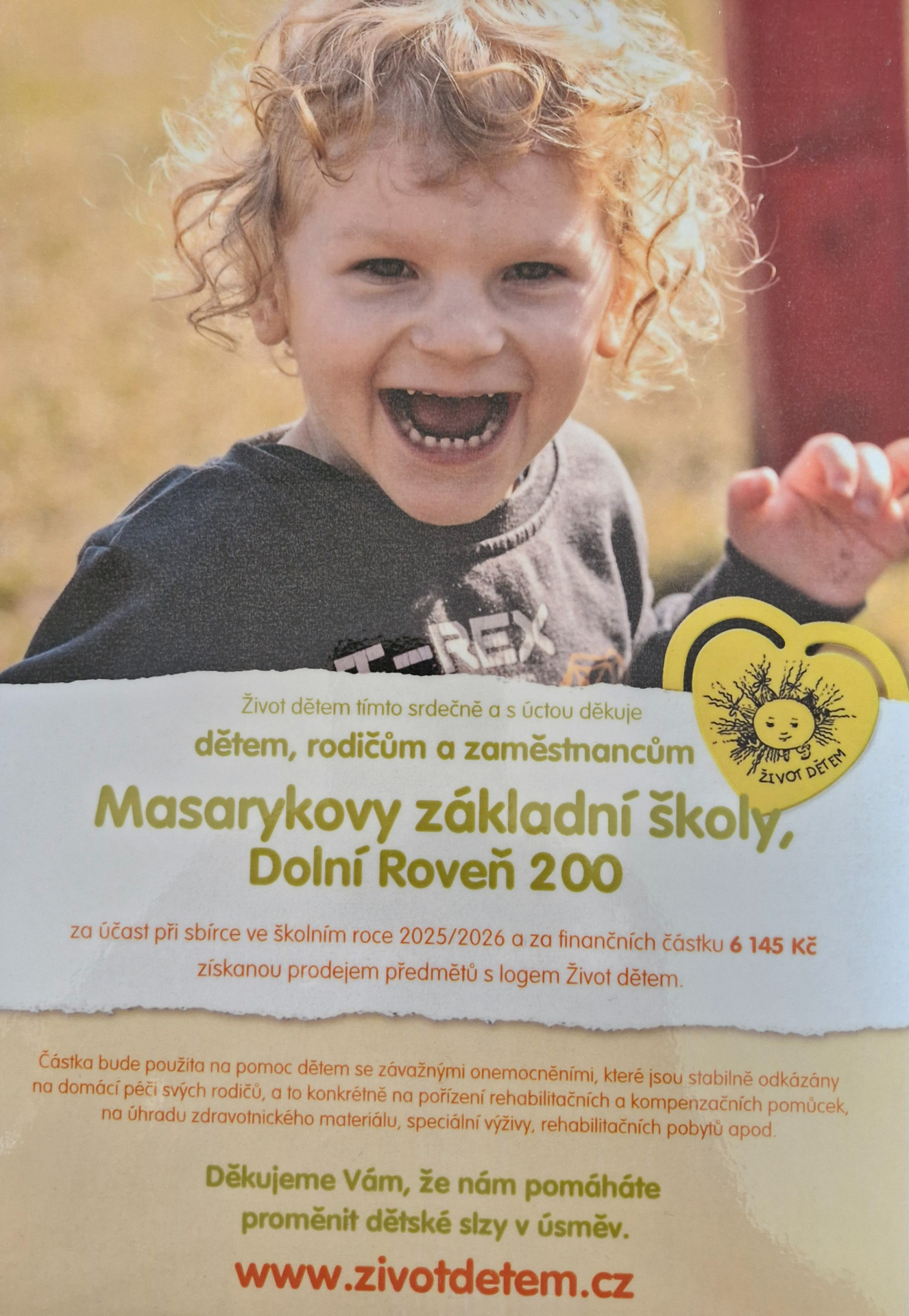 I letos se naše škola zapojila do sbírky organizace Život dětem. Srdečně děkujeme všem, kteří sbírku podpořili!