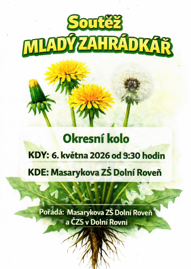 Dne 6. května 2026 naše škola pořádá pro okolní školy okresní kolo soutěže Mladý zahrádkář. Propozice naleznete zde.